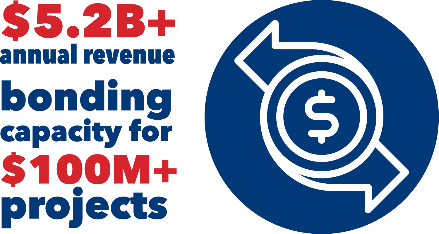 $5.2B+ annual revenue with bonding capacity for $100M+ projects. Employee-owned stability. Program risk reduction through guaranteed pricing and schedule certainty.